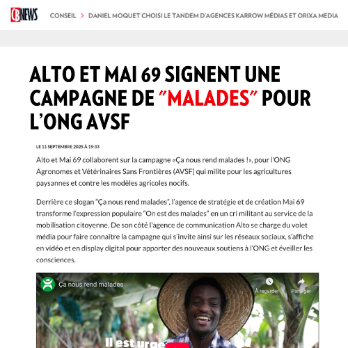 Alto et Mai 69 collaborent sur la campagne «Ça nous rend malades !», pour l’ONG Agronomes et Vétérinaires Sans Frontières (AVSF)...